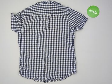 Koszula męska z krótkim rękawem - Wzór: krata w odcieniach granatu i jasnego niebieskiego - Materiał: 100% bawełna (metka „BAWEŁNA / COTTON”, „Jakość pierwsza”) - Kołnierzyk: klasyczny, wewnętrzne...