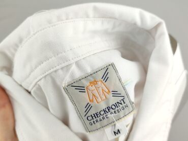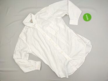 Biała koszula męska z długim rękawem, rozmiar M. - Klasyczny kołnierzyk, zapięcie na guziki na całej długości - Mankiety na guziki - Krój z zaokrąglonym dołem - Materiał: 100% poliester (informacj...