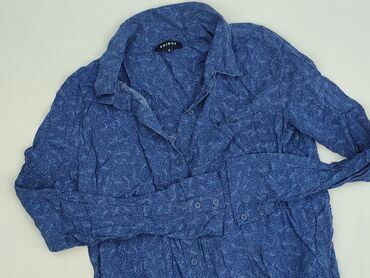 Koszula męska z krótkim rękawem, wzór etno/geometryczny w kolorze granatowo-białym. - Materiał: wiskoza (metka „VISKOSE” widoczna na zdjęciu) – lekka, oddychająca, miękka w dotyku. - Krój: klasycz...