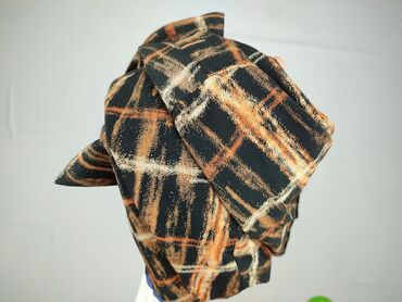 - Wzór: artystyczna krata/siatka w odcieniach czerni, rudo‑pomarańczowego i beżu
