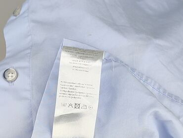Koszula męska EX MEN’S SHIRTS z krótkim rękawem. - Kolor: błękitny z kontrastowym, białym kołnierzykiem. - Krój: klasyczny, z zaokrąglonym dołem i pojedynczą kieszonką na piersi. - Zapięcie: na gu...