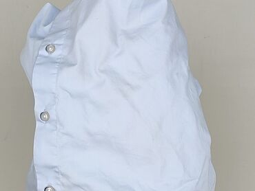 Męska koszula Mouli, rozmiar M. - Kolor: bardzo jasny błękit/melanż - Fason: klasyczny z długim rękawem, lekko zaokrąglony dół - Zapięcie: guziki z przodu w kontrastowym ciemnym kolorze - Mankiety...