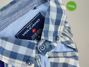 Męska koszula VOLCANO, rozmiar XXL - Krój z długim rękawem i kołnierzykiem button-down - Wzór: drobna kratka w odcieniach granatu i bieli - Materiał: 100% bawełna (metka na zdjęciu) - Dodatki z ko...