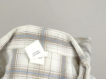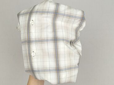 Męska koszula w kratkę – krótkie rękawy - Krój: klasyczny, zapinana na guziki z przodu - Kołnierzyk: tradycyjny - Rękaw: krótki - Kieszeń: 1 kieszonka na piersi - Wzór: drobna beżowo‑biała kratka ...