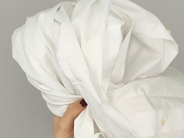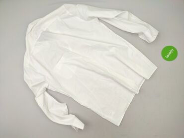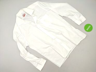 Biała koszula męska z długim rękawem, rozmiar M. - Klasyczny kołnierzyk, zapięcie na guziki na całej długości - Mankiety na guziki - Krój z zaokrąglonym dołem - Materiał: 100% poliester (informacj...