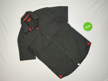 Męska koszula w paski, rozmiar XXL (43–44). - Kolor: ciemny grafit/czarny z drobnymi, pionowymi paskami w odcieniach bieli i szarości - Fason: klasyczny, zapinana na guziki, długi rękaw z mankietam...