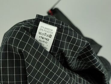 Koszula męska F&F, rozmiar L - Krój: klasyczna koszula z kołnierzykiem, krótki rękaw, zapięcie na guziki na całej długości. - Wzór: czarno-biała krata z subtelnymi granatowymi akcentami. - Materia...