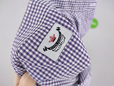 - Detale: haftowana fioletowa korona na piersi, kontrastowe guziki