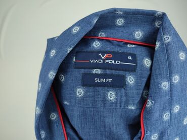Koszula męska VIADI POLO z krótkim rękawem - Rozmiar: XXL (45–46) – metka producenta - Kolor: jasny niebieski z ciemniejszym, granatowym wykończeniem wewnątrz kołnierzyka i listwy guzikowej - Faso...