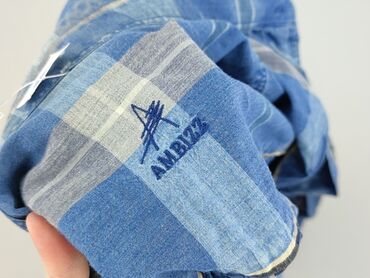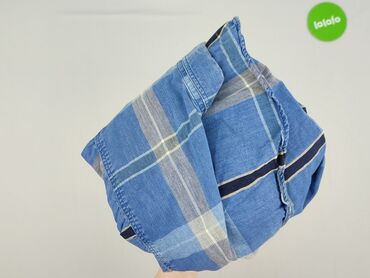- Wzór: duża krata w odcieniach niebieskiego, szarości i beżu z ciemnymi akcentami