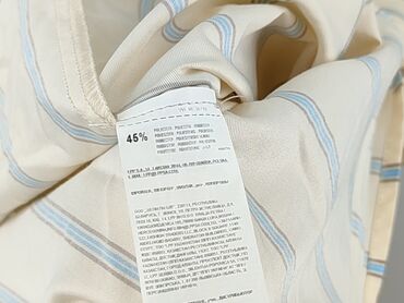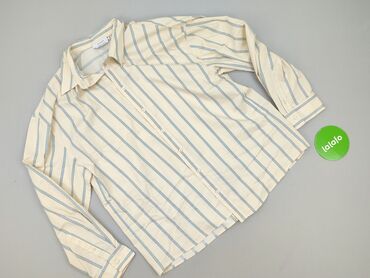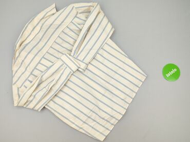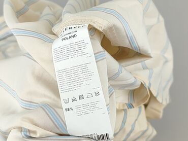 Męska koszula Reserved Apparel, rozmiar L, krój Slim Fit. - Krótki rękaw - Bez kołnierzyka (stójka) - Zapięcie na rząd drewnopodobnych guzików - Granatowo-niebieska w poziome, cienkie białe paski ...