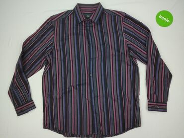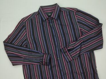 Koszula męska F&F - Krój: regular fit - Rozmiar z metki: EU 38 / US 15 - Kołnierzyk klasyczny, zapinana na guziki - Długi rękaw z mankietami na guziki - Wzór: drobne paski w odcieniach fioletu na ...