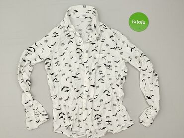 Koszula damska Cropp – rozmiar S - Krój: koszula z krótkim rękawem, zapinana na guziki z przodu - Kolor: czarny - Wzór: białe czaszki i serca na całej powierzchni - Kołnierzyk klasyczny z jasną la...