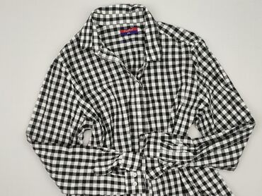 Koszula damska w kratkę gingham - Krój: dopasowany, taliowany - Rękaw: krótki - Zapięcie: na guziki z przodu - Kołnierzyk: klasyczny - Wzór: drobna czarno-biała kratka - Dół koszuli delikatnie zao...