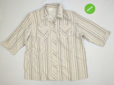 Bezrękawnik/koszula damska na guziki - Fason: bez rękawów, klasyczny kołnierzyk, zapięcie na rząd białych guzików - Wzór: pionowe pasy w odcieniach beżu, błękitu, oliwki i bieli - Materiał: lekka,...