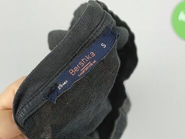 Bluzka damska marki Bershka w rozmiarze EU S, wykonana z mieszanki wiskozy, poliestru i elastanu. Materiał w melanżowy wzór w odcieniach szarości. Charakteryzuje się okrągłym dekoltem i krótkimi rę...