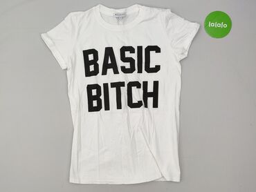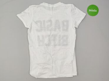 Biała damska koszulka basic z krótkim rękawem - Fason: klasyczny T‑shirt, prosty krój - Dekolt: okrągły - Kolor: biały - Materiał: cienka, przewiewna dzianina (miękka w dotyku; widoczna delikatna ...