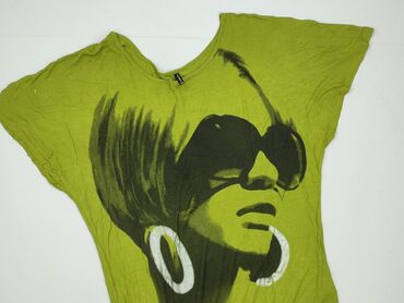 Koszulka damska AMISU - Rozmiar: XS (EU/US/CA) - Kolor: oliwkowa zieleń - Krój: luźny, z krótkim rękawem typu nietoperz; klasyczny, okrągły dekolt - Nadruk z przodu: złoty napis „Good things” oraz...