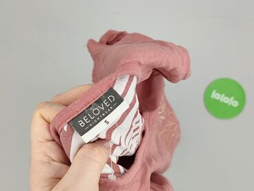 T-shirt damski Beloved Woman, rozmiar S. - Krój: klasyczny T-shirt z krótkim rękawem, okrągły dekolt, delikatnie zaokrąglony i nieco dłuższy tył. - Wzór: jasnoniebieska baza z połączeniem drobnych...