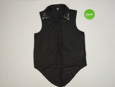 Czarna koszula bez rękawów z kołnierzykiem zdobionym małymi srebrnymi ćwiekami/nitami. Zapinana na białe guziki na całej długości. Z przodu naszywana kieszeń na piersi. Fason lekko zaokrąglony u do...