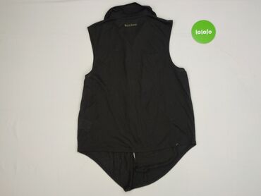 Bez rękawówCzarna koszulka damska bez rękawów, zapinana na guziki, z charakterystycznym kołnierzykiem zdobionym dżetami i metalowymi elementami w kształcie gwiazd. Wykonana w 100% z poliestru, co zapewnia jej lekkość i przewiewność. Idealna do codziennych stylizacji, która doda rockowego charakteru.