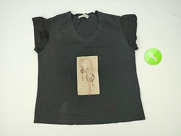 Czarna damska koszulka z nadrukiem - Kolor: czarny - Rozmiar z metki: S - Fason: luźna, z poszerzanymi rękawami typu „cap” i okrągłym dekoltem - Nadruk: duży frontowy print w odcieniach niebieskie...