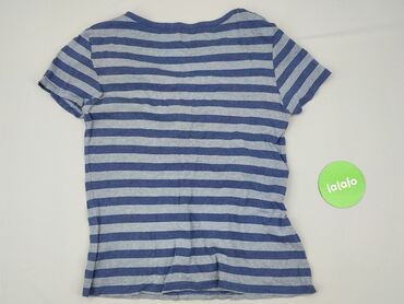 T-shirt damski w paski - Krój: prosty, z krótkim rękawem i okrągłym dekoltem - Wzór: poziome paski biało-niebieskie - Materiał: 100% bawełna (metka z pielęgnacją na zdjęciach) - Tkanina: miękka, d...Stan: