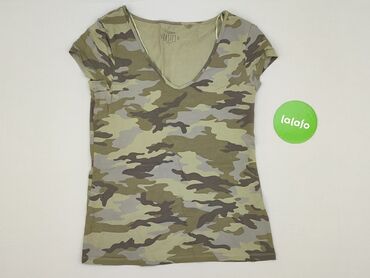 T-shirt damski z dekoltem w serek - Kolor: ciemna zieleń (butelkowa) - Krój: klasyczny, lekko luźny, krótkie rękawy - Dekolt: V-neck - Długość: standardowa, za biodra - Materiał: miękka dzianina b...Stan: