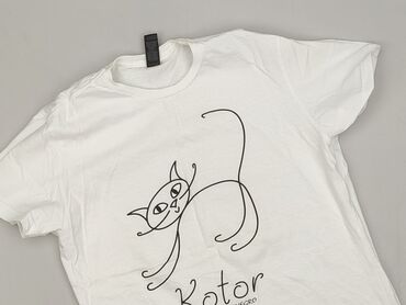 Koszulka damska Sinsay - Kolor: biały - Nadruk: grafika kota w beżowo-czarnych odcieniach na przodzie - Rozmiar z metki: L - Materiał: 100% bawełna (informacja z metki) - Krój: klasyczny T-shirt z...