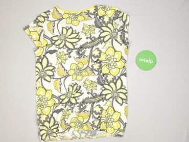 Bluzka damska Street One - Fason: dopasowany T-shirt z krótkim rękawem - Dekolt: okrągły z krótką sznurówką/wiązaniem z przodu - Wzór: duże kwiaty w odcieniach limonkowej zieleni i brązu na jasnon...