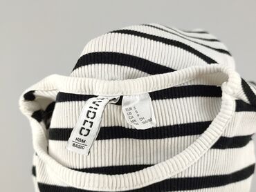 T-shirt damski w czarno-białe paski - Krój: klasyczny, lekko dopasowany - Rękaw: krótki - Dekolt: okrągły z czarną lamówką - Wzór: poziome paski na całej powierzchni - Materiał: miękka, cienka dzi...Stan: