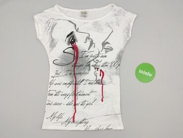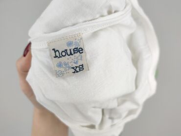 Biała damska koszulka House (EU size M). Krótki, lekko skrócony krój typu crop. Okrągły dekolt, krótkie rękawy. Z przodu niewielki nadruk – urocza postać w stroju truskawki. Materiał: 100% bawełna ...