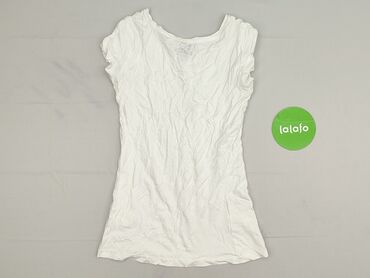 T-shirt damski/ młodzieżowy CLOCKHOUSE (C&A) – linia BASICS - Rozmiar: XS - Kolor: biały - Wzór: drobne niebieskie motyle na całej powierzchni - Krój: klasyczny, z krótkim rękawem i okrągłym dekolt...