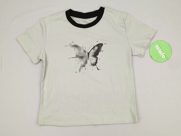 Koszulka damska z krótkim rękawem, biała, z dużym nadrukiem akwarelowego motyla w odcieniach niebieskiego oraz kompozycją mniejszych, wielobarwnych motylków po prawej stronie przodu. - Krój: luźny...
