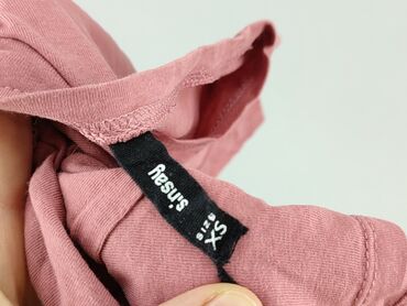 Bladoróżowa bluzka/t-shirt z krótkim rękawem Resusy - Rozmiar: XS (z metki) - Krój: dopasowany, elastyczny, prążkowana dzianina - Dekolt: półgolf/stójka - Rękawy: krótkie - Kolor: jasny róż (pudro...Stan: