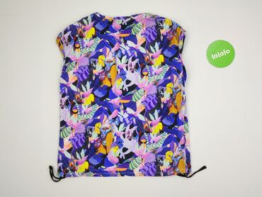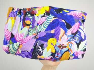 - Wzór: intensywny, wielobarwny nadruk artystyczny z motywami zwierzęco‑roślinnymi w odcieniach fioletu, różu, żółci, zieleni i granatu.