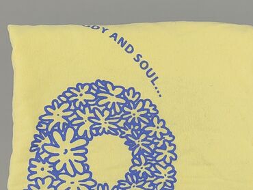 Koszulka damska Sinsay - Rozmiar: L (na metce) - Krój: crop top, luźny, z krótkim rękawem i okrągłym dekoltem - Kolor: pastelowy żółty - Nadruk z przodu: duży motyw yin‑yang z niebieskich kwiatów;...