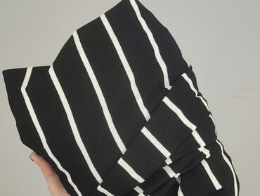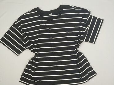 OkrągłyCzarna, prążkowana koszulka damska w białe, poziome paski. Krój oversize z krótkim rękawem i okrągłym dekoltem. Model z dekoracyjnym marszczeniem po bokach w talii, które delikatnie podkreśla sylwetkę. Rozmiar z metki: Women XL.