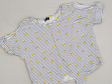 Bluzka damska Sinsay, rozmiar XS. - Fason: dopasowany T-shirt z krótkim rękawem - Kolor/wzór: biały w cienkie paski zielone i żółte - Materiał: prążkowana, elastyczna dzianina (miękka, sprężysta, ...
