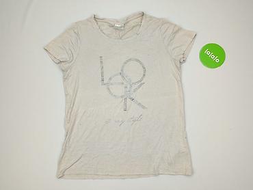 Uniwersalny, codzienny T-shirt z delikatnym połyskiem nadruku, dobrze łączy się z jeansami i spódnicami. Idealny dla kobiety. Używany.