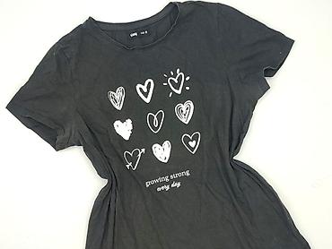 Czarna koszulka damska Sinsay, rozmiar L. - Krój: klasyczny T-shirt z krótkim rękawem i okrągłym dekoltem. - Kolor: czarny. - Nadruk z przodu: dziewięć białych, szkicowanych serc + napis „growin...