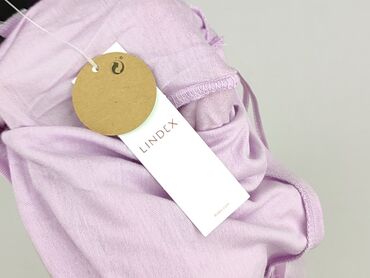 T-shirt damski LINDEX - Kolor: jasny fiolet/lawenda - Krój: dopasowany, z krótkim rękawem - Dekolt: szeroki, zaokrąglony (łódka/scoop) - Rozmiar z metki: M - Materiał: miękka, elastyczna dzianina ...