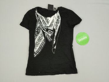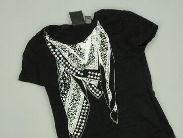 Damska koszulka z krótkim rękawem - Kolor: czarny - Nadruk: biały, geometryczny/ornamentalny motyw na przodzie - Krój: dopasowany, taliowany - Dekolt: okrągły - Materiał: miękka, elastyczna dziani...