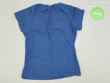 Granatowy T-shirt damski marki Esmara, rozmiar M 40/42. Na przodzie koszulki znajduje się biały nadruk "Lovely Summer by the seaside". Krótkie rękawy są podwinięte. Klasyczny krój sprawia, że koszu...