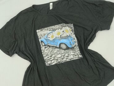 Bluzka damska z krótkim rękawem - Fason: klasyczny T‑shirt, okrągły dekolt - Rozmiar z metki: EU 46 (GB 20, FR/BE/LU 48, ES 52, IT 54, RUS 54, USA 14) - Wzór: mieszanka motywów kwiatowych i zwierz...