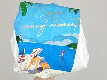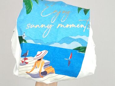 T-shirt damski Sinsay, rozmiar L - Materiał: 100% bawełna (metka w środku) - Kolor bazowy: biały - Wzór: kolorowe, letnie motywy w stylu komiksowym – palmy, arbuzy, lody, muszle, parasole plażowe,...