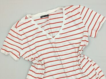 T-shirt damski Sinsay - Model: koszulka w paski - Kolor: biały w cienkie czarne poziome paski - Krój: z krótkim rękawem, dekolt w serek (V-neck), lekko zaokrąglony dół - Rozmiar z metki: M - Mater...