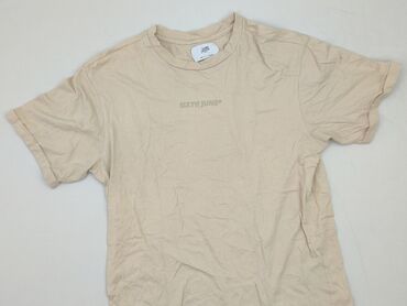 T-shirt damski Sinsay, rozmiar S. - Kolor: jasny beż/ecru. - Krój: klasyczny, z krótkim rękawem i okrągłym dekoltem. - Przód zdobi duży napis „JUST” wyszywany perełkami i drobnymi dżetami. - Mi...
