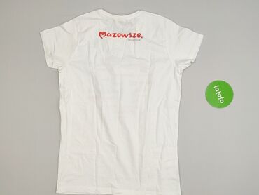 T-shirt damski Reserved, rozmiar M - Kolor: biały - Krój: klasyczny, z krótkim rękawem i okrągłym dekoltem - Nadruk z przodu: grafika kobiety na tle miasta z kolorowymi akcentami; u dołu napis „pa...