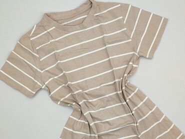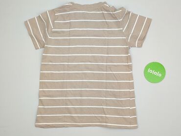 Bluzka damska w paski - Krój: dopasowany T‑shirt z krótkim rękawem - Dekolt: łódkowy/szeroki, lekko opuszczany na ramiona - Wzór: poziome paski w kolorze karmelowym i ecru - Materiał: miękka, elas...